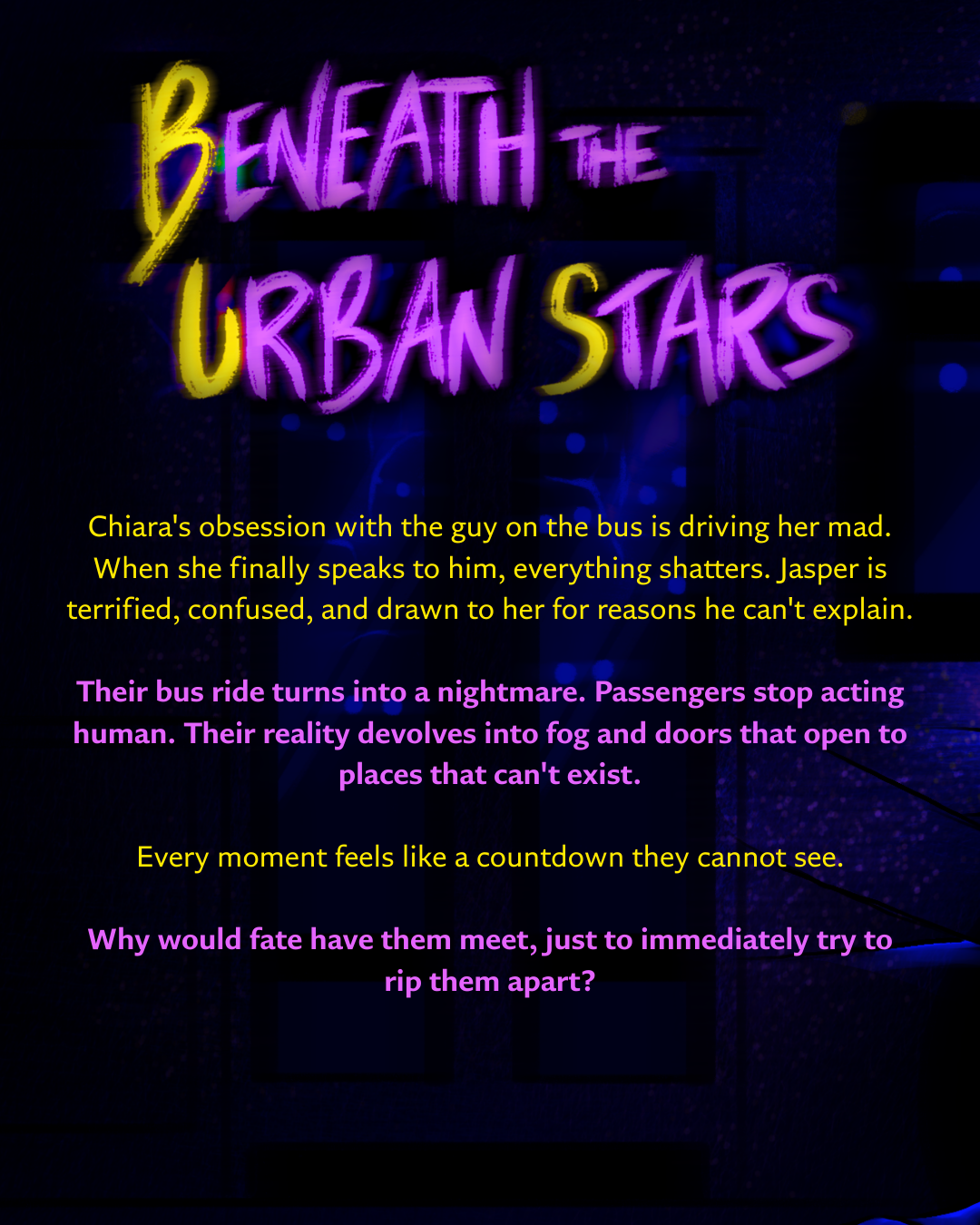 It is a bi x bi descent into dreams, obsessions, and unraveling realities, where she falls first and he falls harder. Both characters are neurodivergent, confused, and desperate to understand a world that keeps breaking around them, racing against a ticking clock they cannot see.